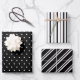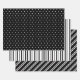 Monochrome Black And White Elegant Patterns Wrapping Paper features 3 different black and white pattern designs with dots and stripes. Designed by Evco Studio www.zazzle.com/store/evcostudio