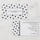 A simple and classic monochrome business card featuring a white box outlined in black in the centre for your name and profession. The background is a polka dot design with black dots on a white background. The design is repeated on the back with more space for your details.