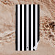 Monochrome Black & White Cabana Stripe Monogram Beach Towel