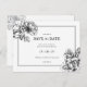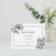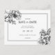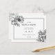 A monochrome etched floral design. Beautiful,details flowers decorate the corners of the page - with a double line border. The text is simple but sophisticated.