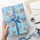 Monochrome Flowers on Baby Blue Ground Giftwrap Wrapping Paper