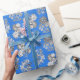 Monochrome Flowers on Bright Blue Ground Giftwrap Wrapping Paper