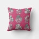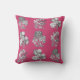 Monochrome flowers on cerise background cushion