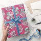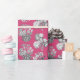 Monochrome Flowers on Cerise Background Giftwrap Wrapping Paper