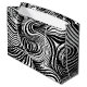 Black and white lines swirl and twist in a hypnotic pattern creating a sense of movement