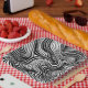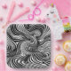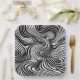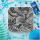 Black and white lines swirl and twist in a hypnotic pattern creating a sense of movement.