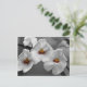 Beautiful white orchids with vibrant yellow and red center converted to black and white with the center colors painted back in. One of a kind card to send to anyone. Photo by T.Dashfield