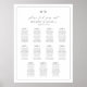 Classic Calligraphy Script Wedding Seating Plan with Monogram and Border. Find Your Seat sign. Personalised Seating Chart for 110 guests (11 tables). Just click the customise further link, shown under the text personalisation area on the right, and choose your custom colour background. This sign poster template makes it fast and easy to create stunning additions to your wedding decor. Signs can be enlarged, there are many sizes to choose from, as well as options for custom framing and matting.