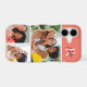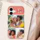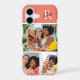 This iPhone case features space for 3 photos and is accented with a modern monogram at the top. The background color is dark salmon.