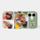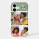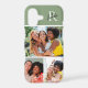 This iPhone case features space for 3 photos and is accented with a modern monogram at the top. The background color is sage green.