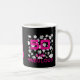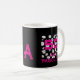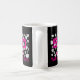 Beloved “50 and fabulous” birthday theme mug. For a casual relaxed celebration of an active sporty lady. Bold hot pink typography and a sweet pretty white tiny hand drawn wildflower pattern pop up nicely on black background for example.If you wish you can have a monogram initial letter too.