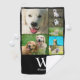 Monogram 7 photo golf towel. Replace the photos with your own pet or family photos. Easy to change the monogram and name. Modern, trendy golf towel. Makes a great gift idea.