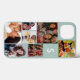 Personalise the phone cover with your favourite photos, easily can fit the photo to the area.8 photo collage iPhone 13 Case in saga green background . you can change the background colour from edit design tool.