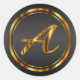 Monogram A-Z - Metallic Gold on Black Satin Classic Round Sticker