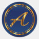 Monogram A-Z - Metallic Gold on Navy Blue Classic Round Sticker