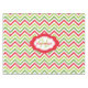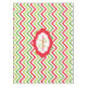 Red, white, lime, and green chevron stripe Christmas holiday tablecloth with a centre framed banner of white and red with red text area to add your surname, green text area to add your monogram initial!