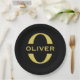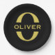 Monogram And Name Black And Gold Personalised Paper Plate