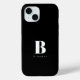 Simple minimalist initial letter and name personalised solid black and white phone case.