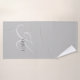 Beautiful monogram and personalized name combination on a high quality polyester and cotton bath towel. Ornate large light gray initial with classic font full name in charcoal on a medium gray background. Design positioned on lower 1/3 of towel for esthetic appeal. Perfect addition to your bathroom decor. Makes an ideal birthday, Mother's Day or housewarming gift.