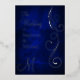 This beautiful wedding invitation in silver foil will give a sense of elegance to your wedding! The front right has a graceful swirl decoration adorned with a leaf. Your wedding text is at the left of the image. Everything is placed on a stunning deep royal blue abstract background. The back of the invitation is the same blue background, with your custom silver text in several fields. Easy to customise, and elegant for any season.