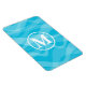 Monogram cruise magnet cabin door decoration with your initial letter in white in a circle and a blue and aqua ocean waves pattern in the background.