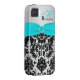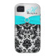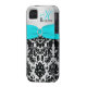 Monogram Aqua Black Silver Damask iPhone 4 Vibe Case-Mate iPhone Case