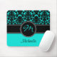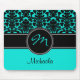 This modern and trendy monogrammed turquoise blue, black, and white damask pattern mousepad has template boxes for you to personalise with your own name, initials, monogram, or other text. If you need any help customising this trendy mousepad, please email niteowlstudio@gmail.com.