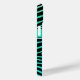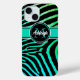 This modern and chic black zebra striped iPhone 15 case has a background colour gradient from green to aquamarine with an aquamarine, black, and white band across the middle with a black and aqua circle on top that has template text for you to personalise with your name in white over your monogram or initial in turquoise. It's perfect for the fun-loving young woman with a style all her own. If you need assistance, email niteowlstudio@gmail.com.