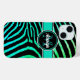 Monogram Aqua Green, Black Zebra Stripes Case-Mate iPhone Case