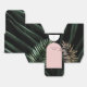 White and blush pink arches over cardstock inspired colour scheme dark palm leaf background with monogram in grey and watercolor palm leaf illustrations with name and date.