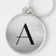 Monogram Art Deco Silver Satin Stripes Key Ring