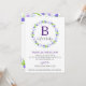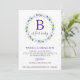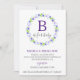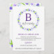 A large, monogrammed and purple "B" sits within a softly coloured flower crown for our B is for Baby Baby Shower Invitations.