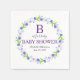 A large, monogrammed and purple "B" sits within a softly coloured flower crown for our B is for Baby Baby Shower Napkins.