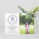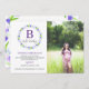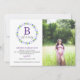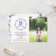 A large, monogrammed and purple "B" sits within a softly coloured flower crown for our B is for Baby Baby Shower Photo Invitations.
