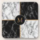 Monogram Beverage Coaster Black White Check Marble