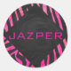 Monogram Black and Hot Pink Zebra Design Classic Round Sticker