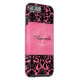 Monogrammed modern black and pink damask Vibe™ iPhone 6 case can be customised with your logo, name, initial, or other text. If you need assistance, email niteowlstudio@gmail.com.