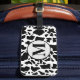 Monogram Black and White Cow Print Luggage Tag