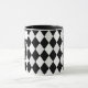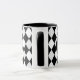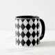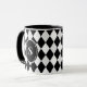 Custom monogrammed bold black and white harlequin diamond-patterned mug.