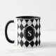 Monogram Black and White Harlequin Diamond Pattern Mug
