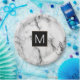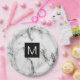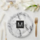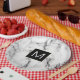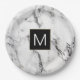 monogram black and white marble look paper plate