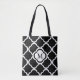 Monogram Black And White Quatrefoil Pattern Tote Bag