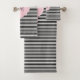 Monogram Black and White Stripes with Pastel Pink Bath Towel Set