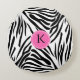 Monogram Black and White Zebra Print with Hot Pink Round Cushion