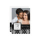Elegant black and white accent colour with black Monogram with Black and White Vintage Damask Pattern Save the Date Flat Cards with Your Engagement Photo. Layout Design by Elke Clarke©. Graphics licensed. Customise by inserting your engagement photo, personal information and save the date message on the back. Customisable. Just click the "CUSTOMIZE" button