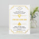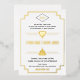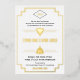Monogrammed black, gold, and white art deco retro pattern wedding invitations. A 1920s style invitation. The design features a black, gold and white colour palette and motifs inspired by the art deco style.