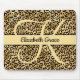 Monogrammed Black and gold leopard print, animal print, cheetah print mouse pad