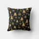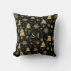 Monogram Black Golden Christmas Tree Snowflakes Cushion