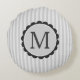 Monogram Black Grey White Scalloped Stripes Round Cushion