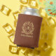 Monogram Black Heraldic Crest Brown Faux Leather Can Cooler